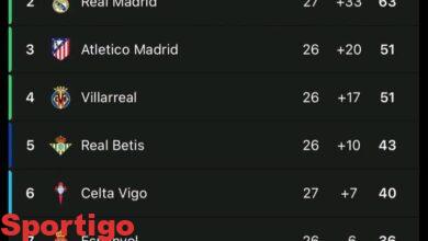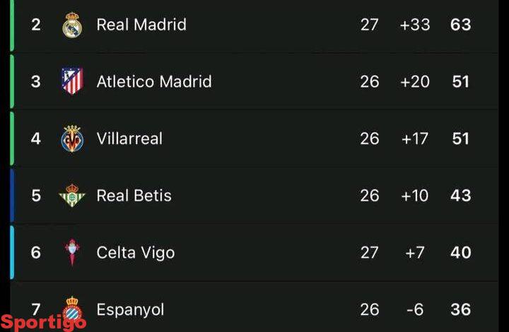 ترتيب الدوري الإسباني….