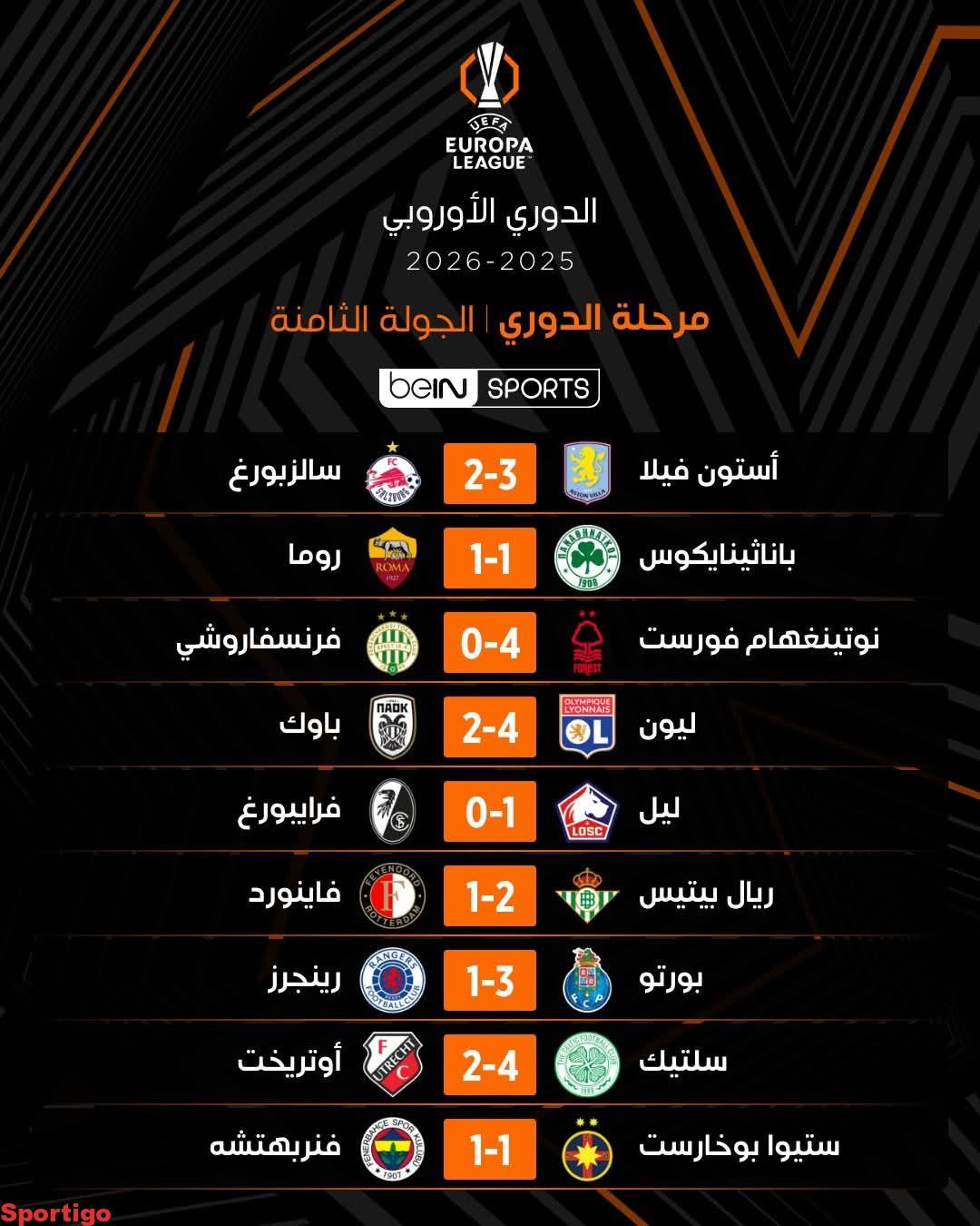 #أبرز #نتائج #مباريات #يوم #الخميس #من #مرحلة #الدوري #ضمن #بطولة #الدوري #الأوروبي #الجولة #الثامنة #والأخيرة..