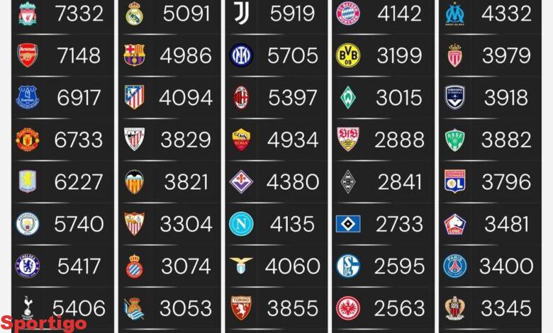 الأعلى جمعا للنقاط عبر تاريخ كرة القدم في الدوريات الكبرى..🔥