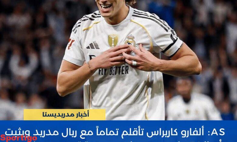 🚨🎖| AS: ألفارو كاريراس تأقلم تماماً مع ريال مدريد ويثبت أن الـ50 مليون يورو كانت مستحقة 👏 يتميز بحضوره القوي ومساهمته في خلق الفرص سواء على الجناح أو في الوسط ♥🤩