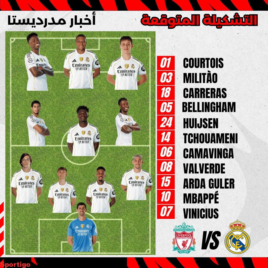 تشكيلة ريال مدريد المتوقعة من صحيفة ماركا ✅ لمباراة الليلة ضد ليفربول 💯🔥