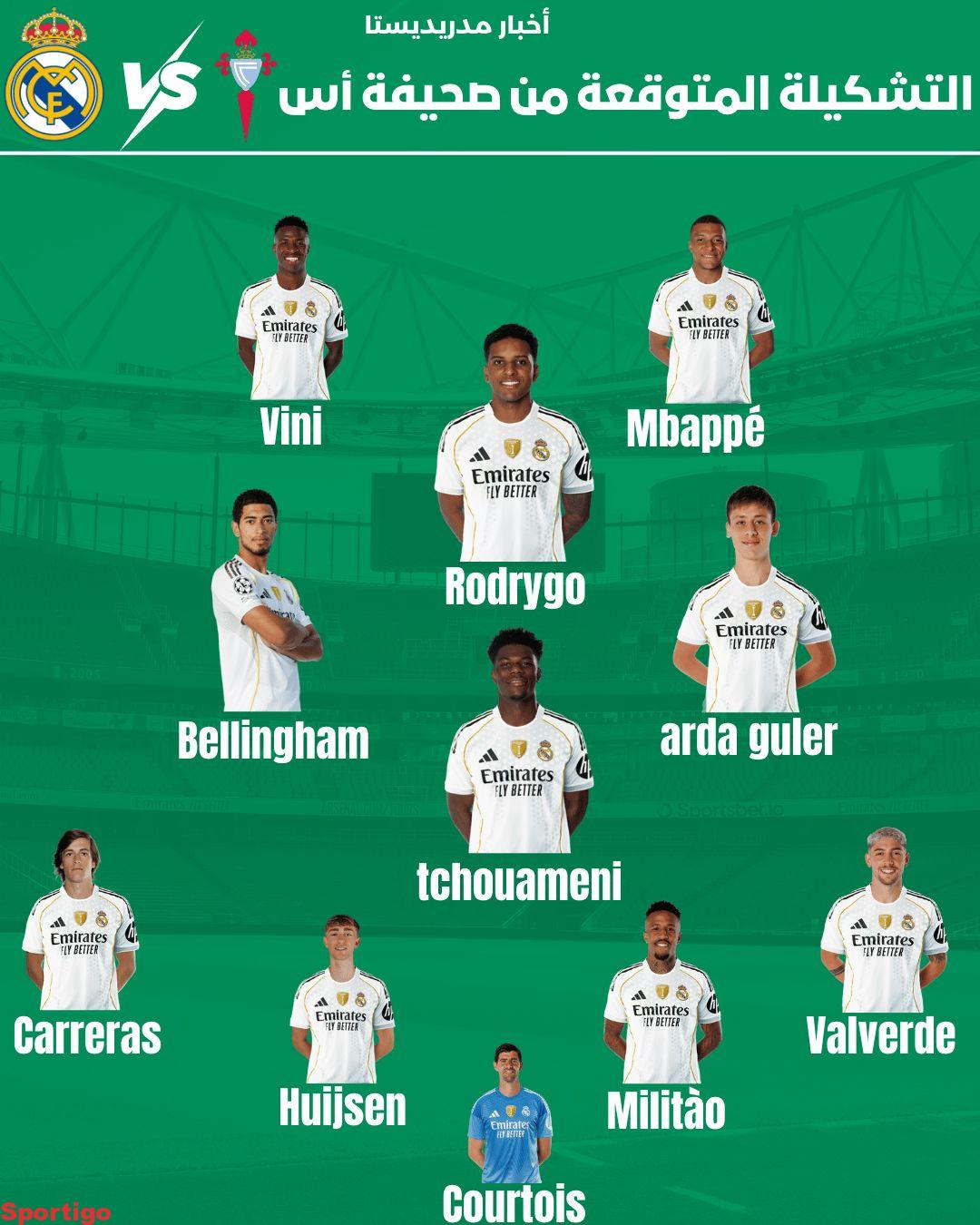 التشكيلة المتوقعة من صحيفة أس لمباراة ريال مدريد ضد سيلتا فيغو غدا 🔥