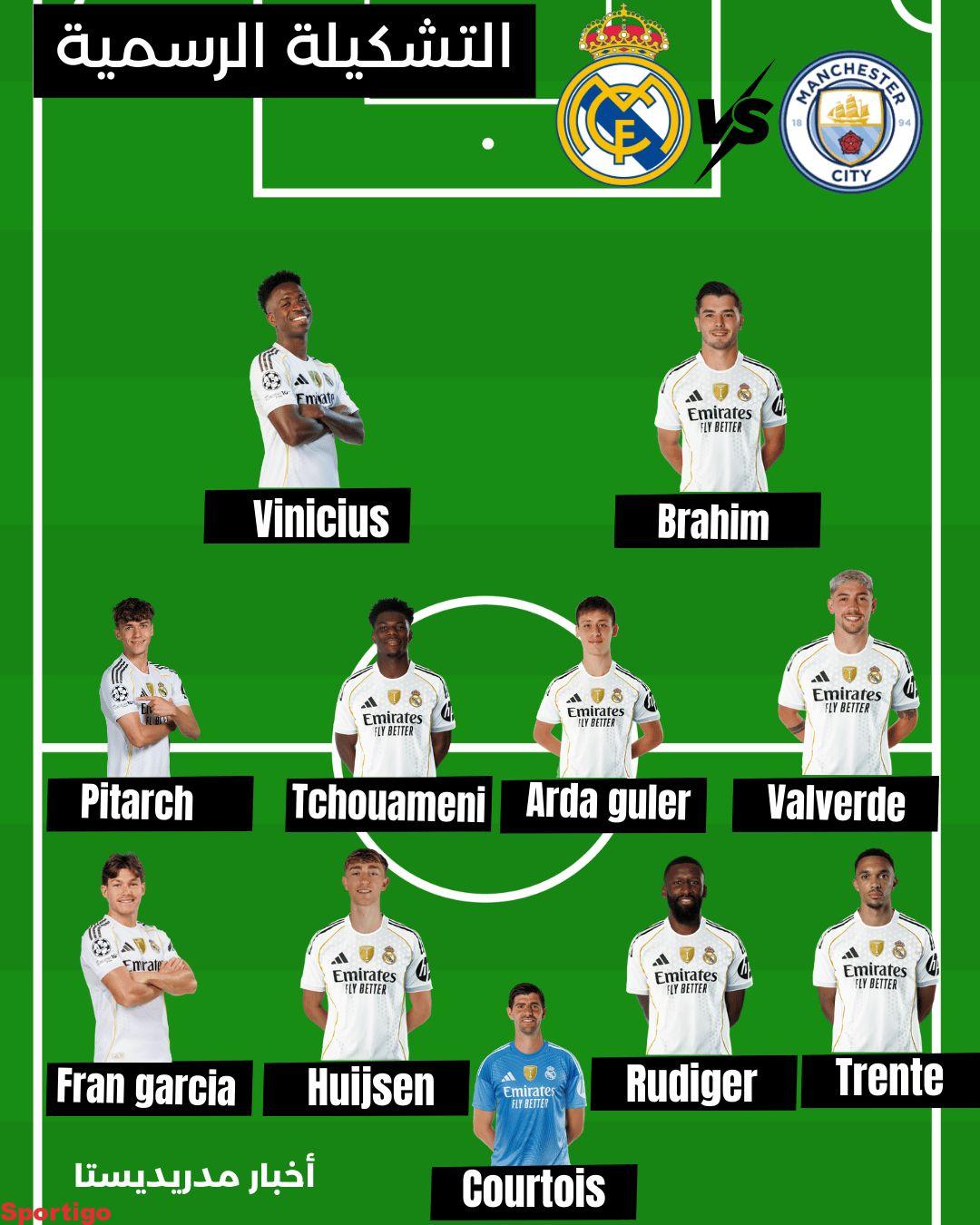 التشكيلة الرسمية لريال مدريد ضد مانشستر سيتي 🔥