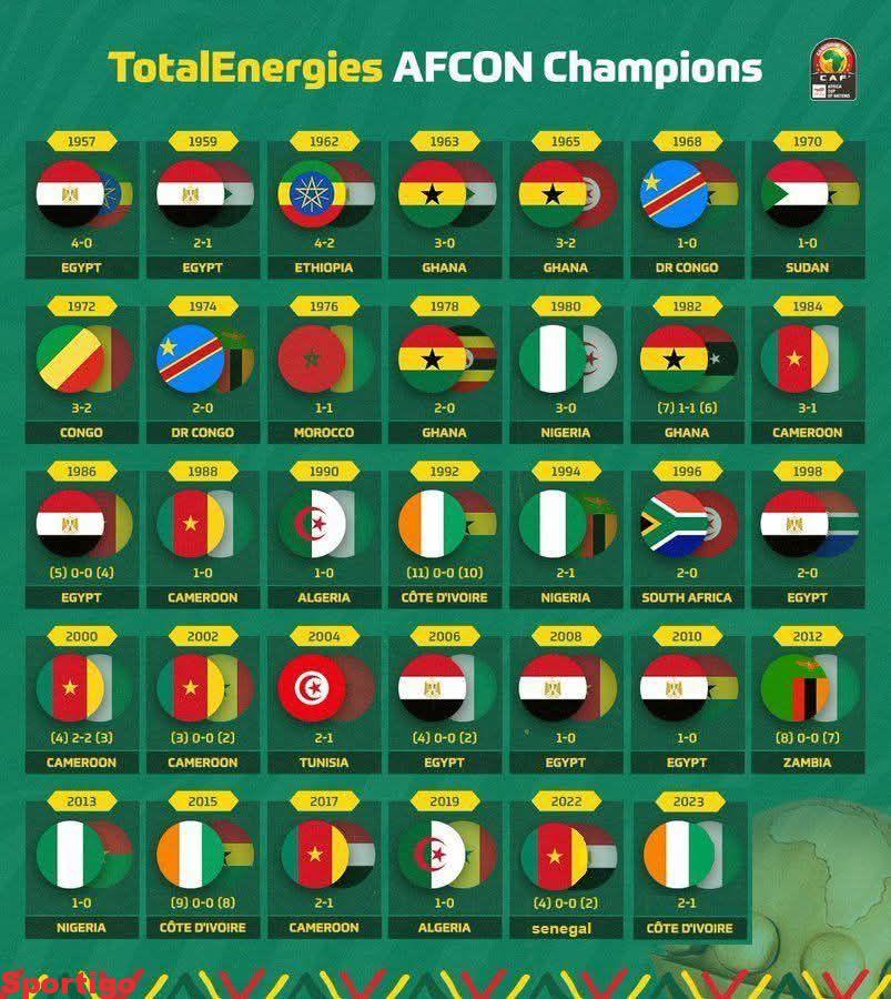 🔶 #كأس الأمم الأفريقية #السجل #التاريخي #لنهائيات #كأس #أمم #أفريقيا..