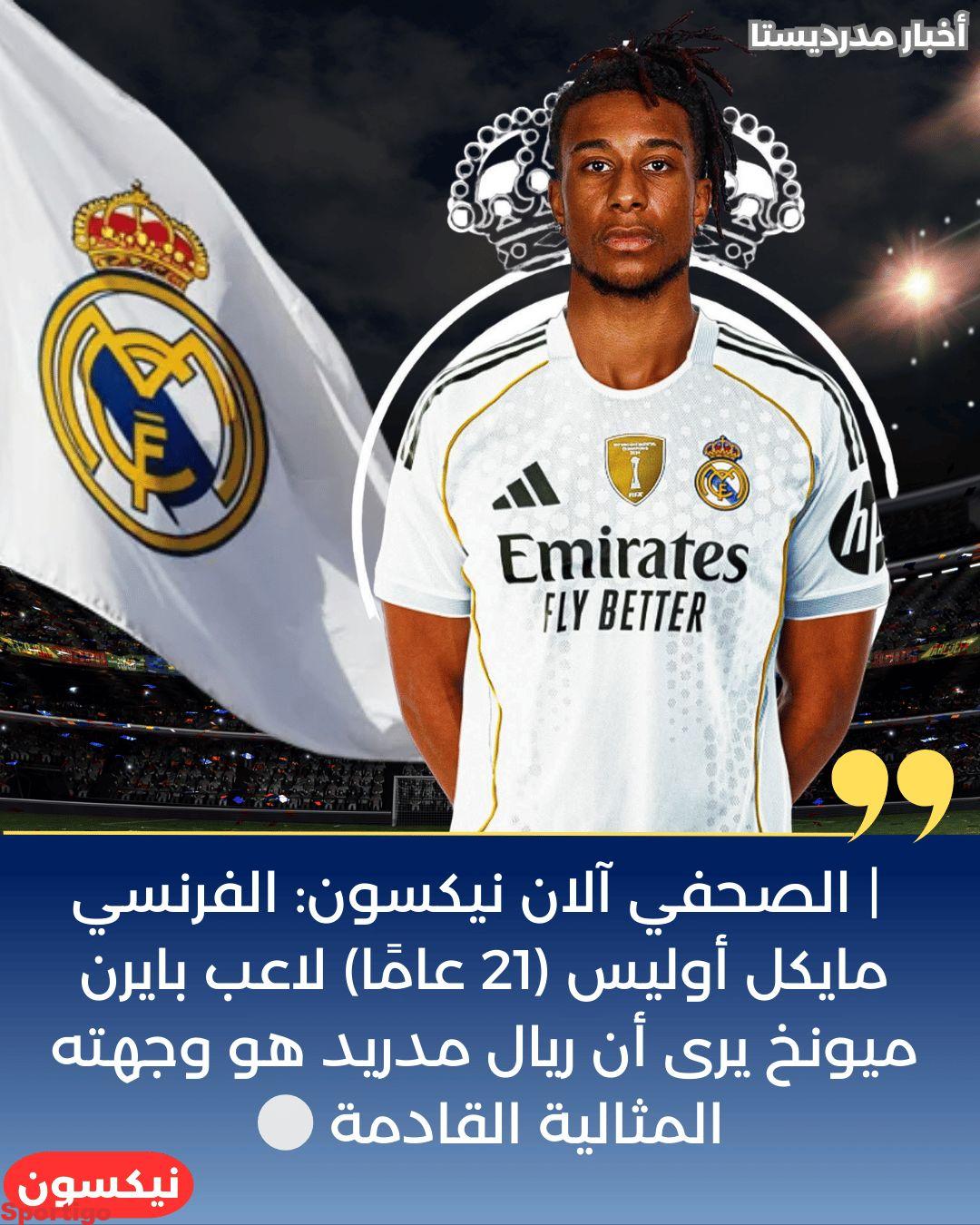 | الصحفي آلان نيكسون: الفرنسي مايكل أوليس (21 عامًا) لاعب بايرن ميونخ يرى أن ريال مدريد هو وجهته المثالية القادمة…