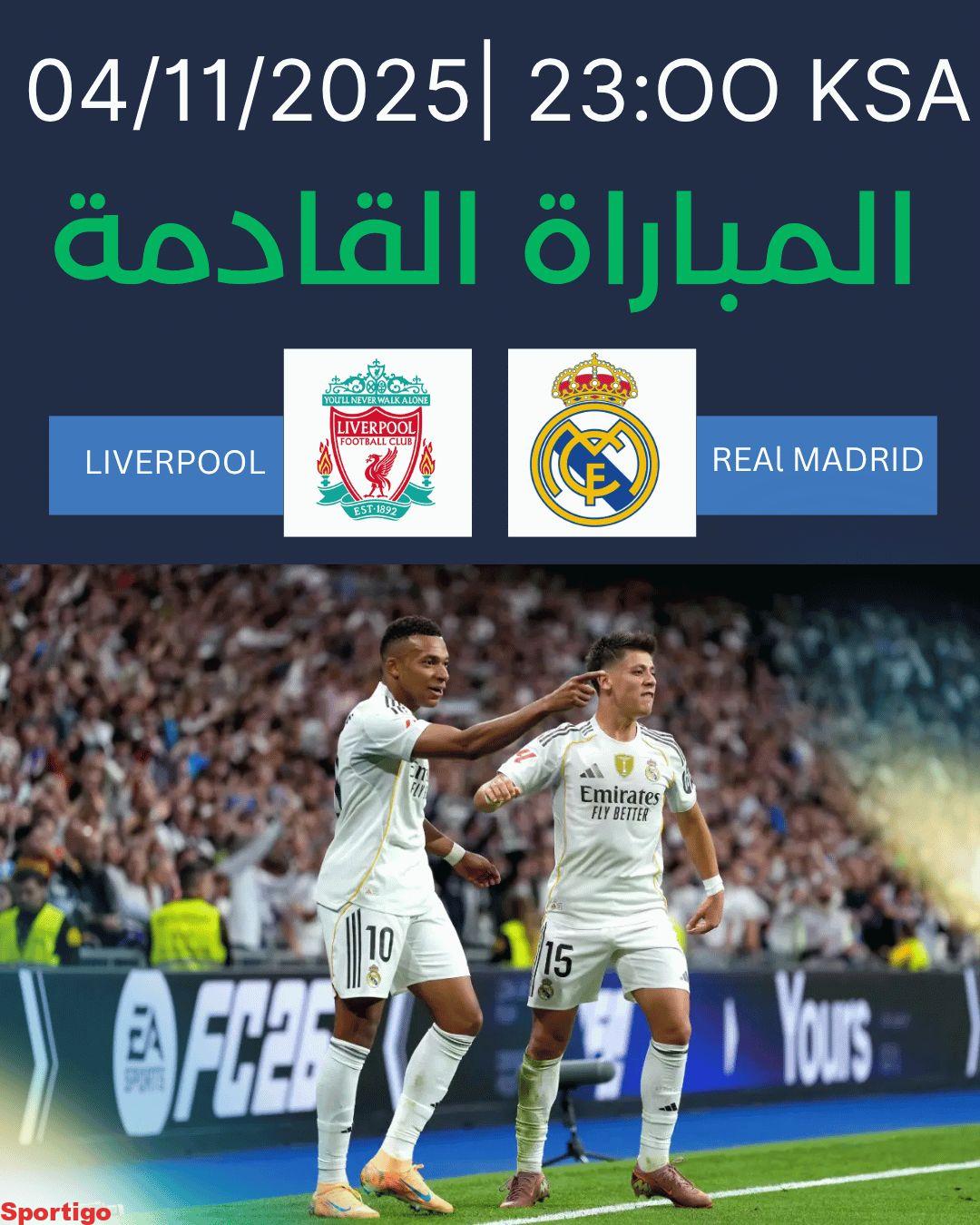 ⚪ الثلاثاء ريال مدريد 💥 ضد ليفربول 🔴