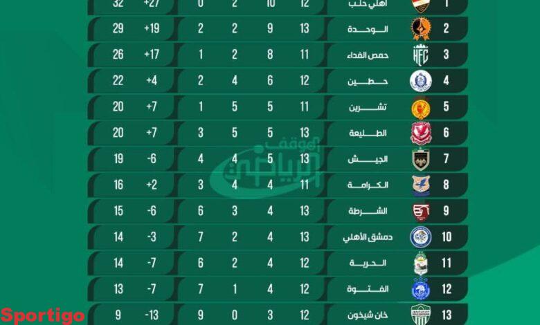الوحدة يستعيد الوصافة، والكرامة يقفز 3 مراكز، إليك ترتيب الدوري السوري بعد نهاية مباريات الجولة الثالثة عشرة…