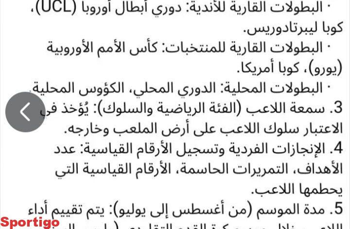 انا لا اعلم ولكن إذا كان هذا هو المعيار الحقيقي للكرة الذهبية كما هو موضح في هذه الصوره فإن رودي أخذها من فيني على حسب هذا المعيار…