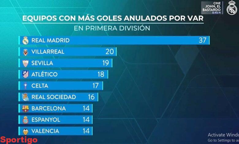– تم إلغاء (37) هدفا سجله فريق ريال مدريد في الليغا،