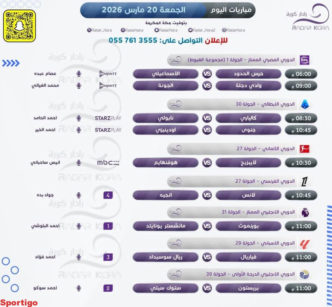 ⚽️ 🗓 | 20 مارس #مباريات_الجمعه #مانشستر_يونايتد_برونموث #جدول_مباريات_اليوم..