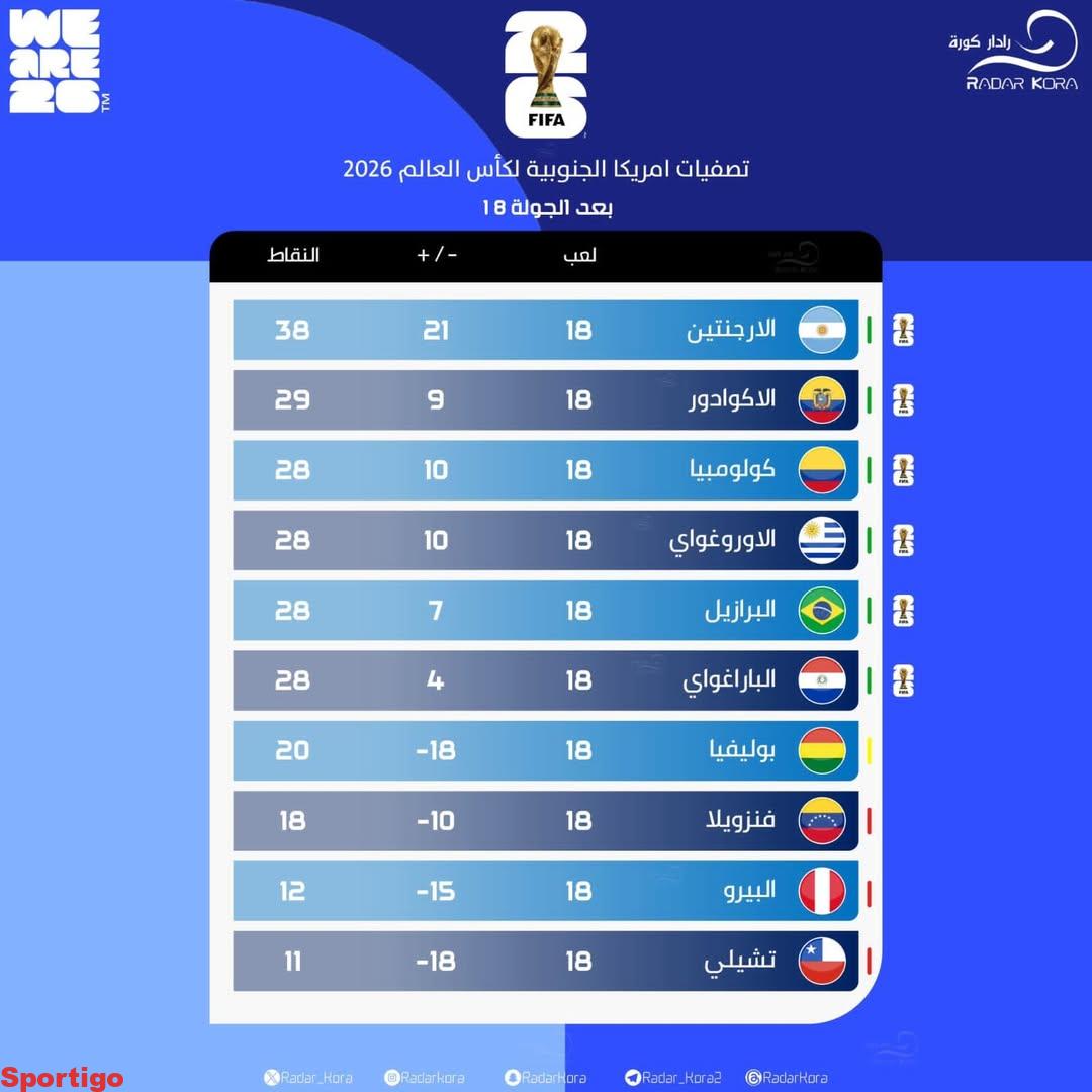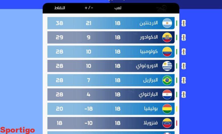 🏆 || ترتيب تصفيات أمريكا الجنوبية لكأس العالم 2026
