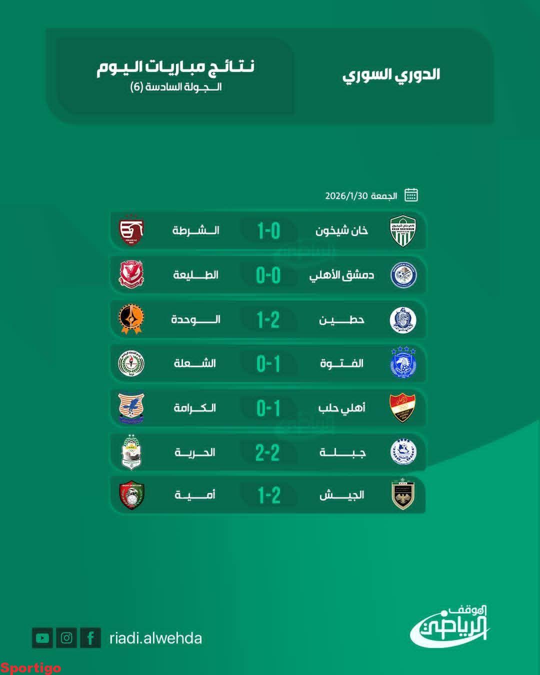 نتائج مباريات المرحلة السادسة من مسابقة الدوري السوري لكرة القدم.