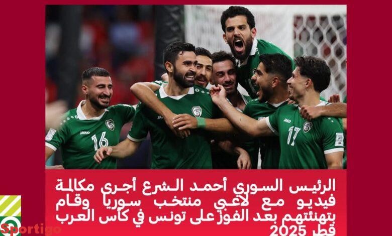 الرئيس السوري أحمد الشرع أجرى مكالمة فيديو مع لاعبي منتخب سوريا وقام بتهنئتهم بعد الفوز على تونس في كأس العرب قطر 2025 🔥🔥
