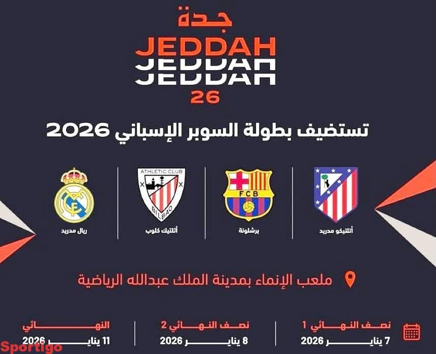 رسميا… ‏كأس السوبر الإسباني سيقام في جدة بين (7-11) يناير المقبل،…
