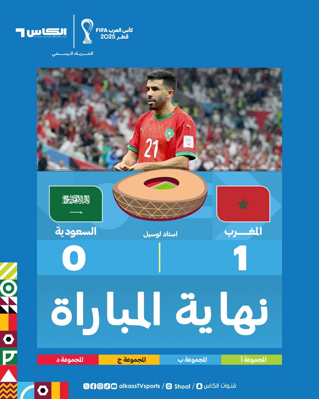 #رسميا #منتخبنا #الوطني #سيواجه #المغرب #في #ربع #نهائي #كأس_العرب #وذلك #بعد #تصدر #أسود #الأطلس #للمجموعة #بسبع #نقاط #بعد #فوزه #على #السعودية #بهدف #دون #رد #في #حين #سيقابل #الأخضر #السعودي #منتخب #فلسطين #وفي #ذات #المجموعة #فاز #منتخب #عمان #على #جزر #القمر #بهدفين #لهدف #ليغادر #الفريقان #البطولة..