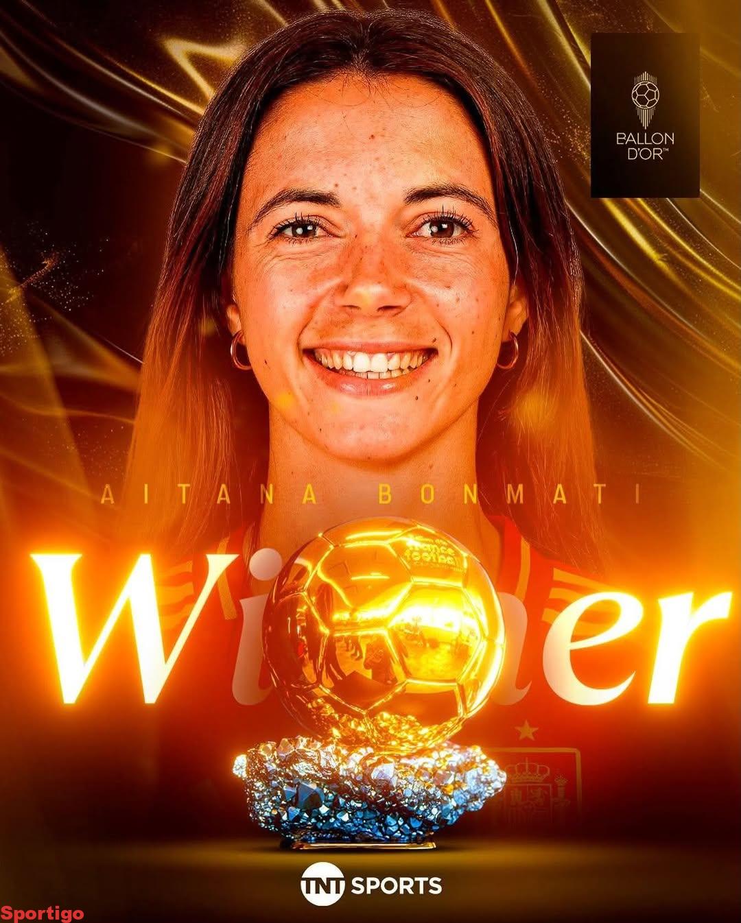 لاعبة برشلونة، آيتانا تفوز بجائزة الكرة الذهبية لأفضل لاعبة في العالم للمرة الثالثة على التوالي🥇🥇🥇