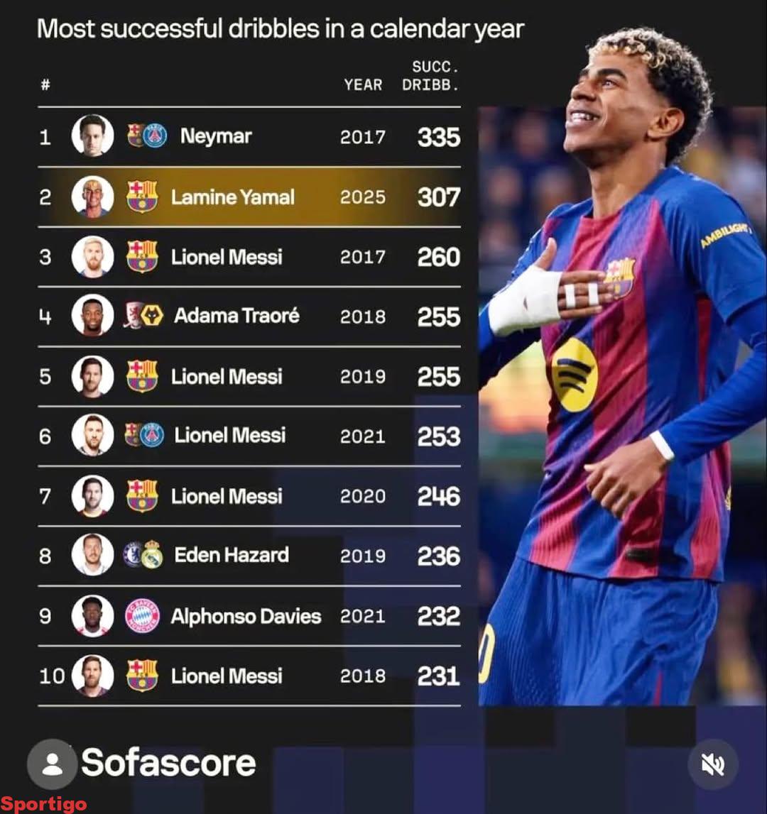 آخر عشر سنوات!🔥 #رقم #مرعب. #يامال #أصبح #ثاني #أكثر #اللاعبين #الذين #قاموا #بمراوغات #ناجحة..