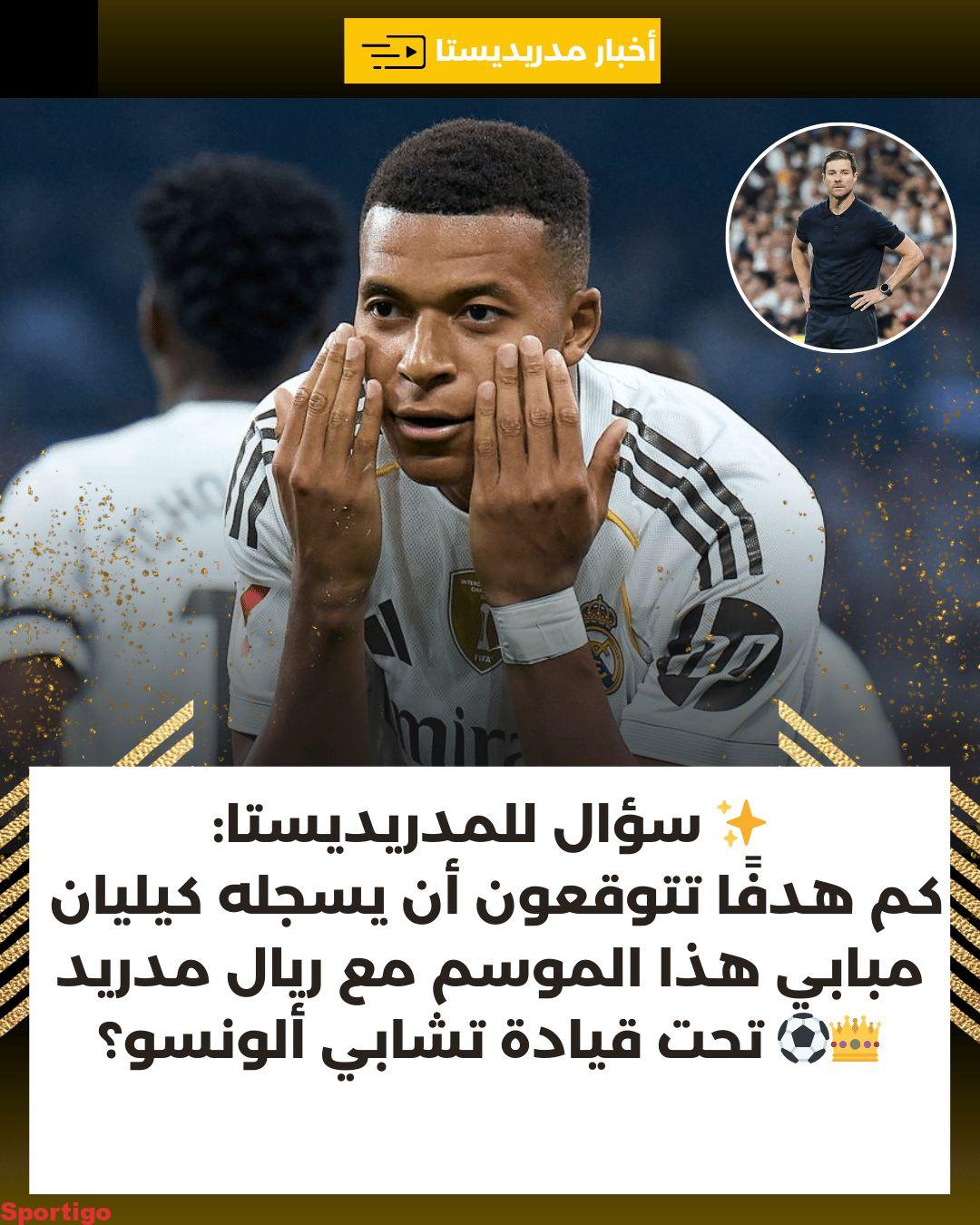 كم هدفًا تتوقعون أن يسجله كيليان مبابي هذا الموسم مع ريال مدريد تحت قيادة تشابي ألونسو؟ ⚽️👑