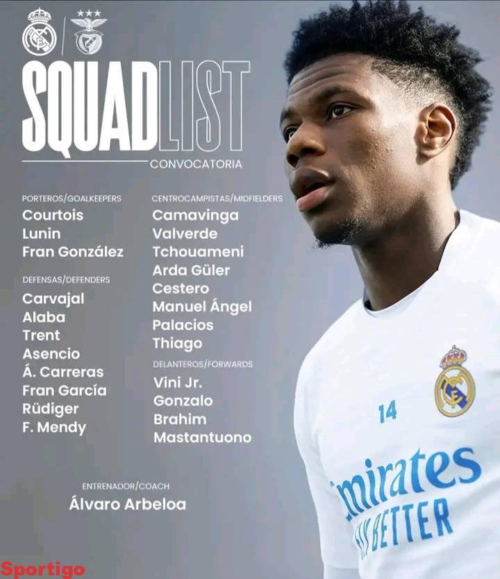 ‏قائمة ريال مدريد لمواجهة بنفيكا الليلة !