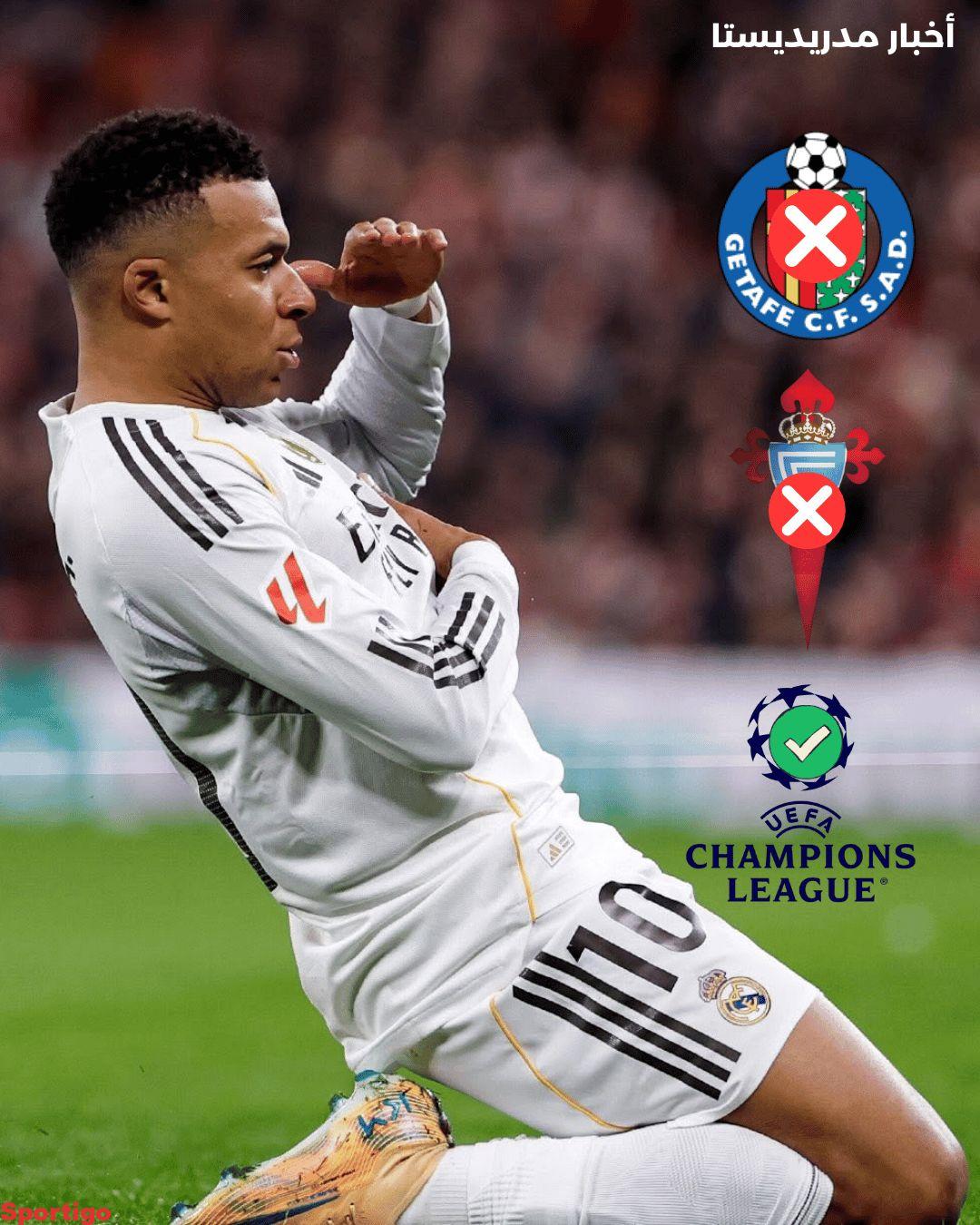 سيغيب النجم الفرنسي كيليان مبابي عن المباراتين المقبلتين لفريق ريال مدريد أمام خيتافي و سيلتا فيغو ⛔️