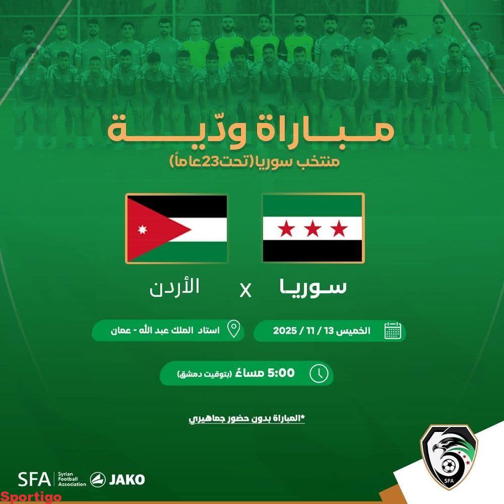 في إطار استعداداته لنهائيات كأس آسيا تحت 23 عاماً (السعودية 2026)، يخوض منتخبنا الوطني الأولمبي مباراة ودية ضد شقيقه منتخب الأردن، غداً الخميس الساعة 5 عصراً بتوقيت دمشق على ملعب الملك عبد الله الثاني في القويسمة….