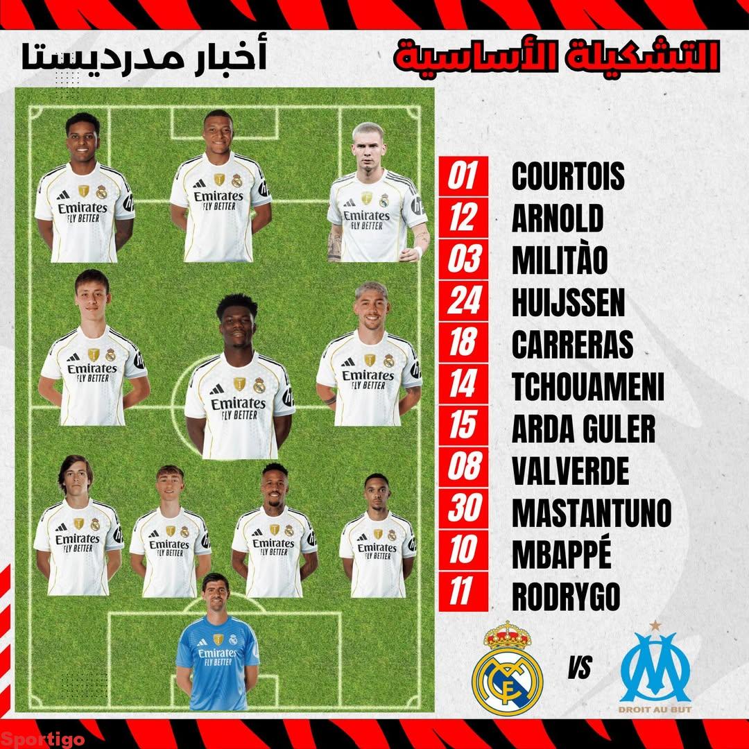 التشكيلة الأساسية لريال مدريد لمباراة مارسيليا في دوري الأبطال تشهد جلوس فنيسيوس على الدكة😱