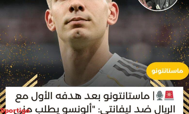 | ماستانتونو بعد أول هدف له مع الريال: “ألونسو يطلب مني ألعب باليمين وأساعد دفاعياً .. واثق من نفسي وأريد مساعدة الفريق…