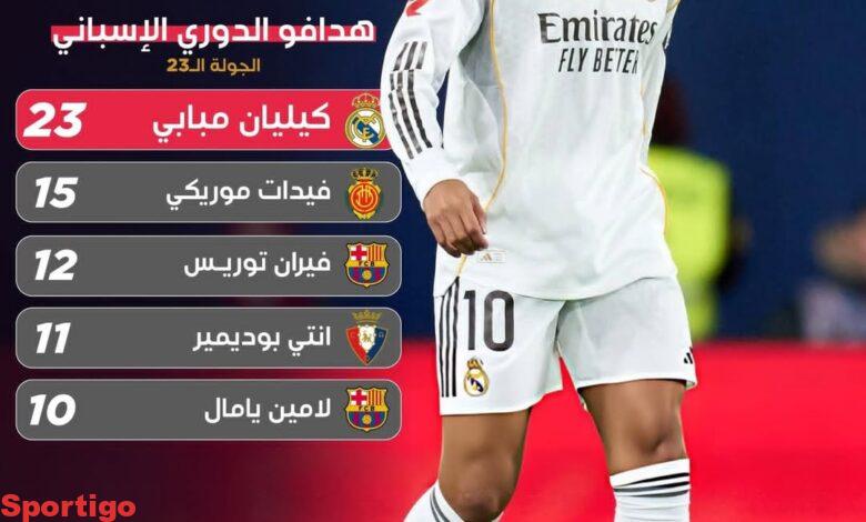 #مبابي يتربع منفردًا على عرش هدافي الليغا بفارق كبير عن أقرب منافسيه…
