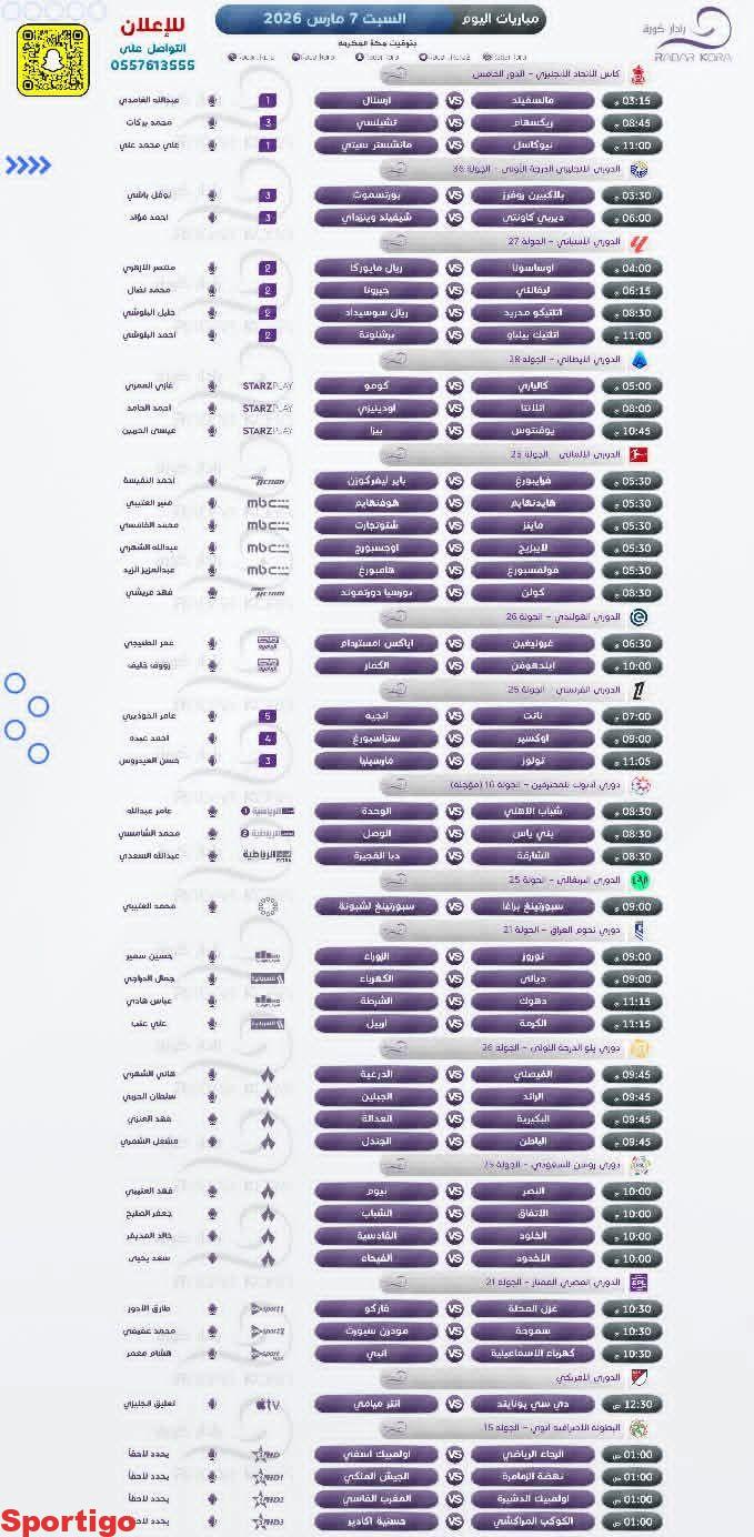 ⚽️ 🗓 | 7 مارس #مباريات_السبت #مباريات_اليوم..