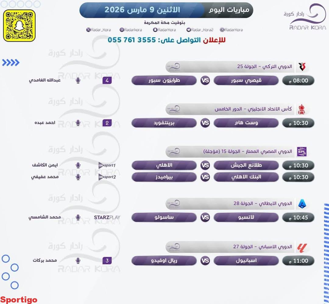 ⚽️ 🗓 | 9 مارس #مباريات_الاثنين #مباريات_اليوم..