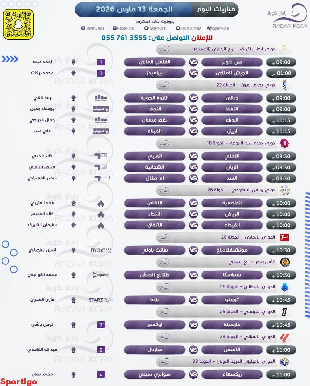 ⚽️ 🗓 | 13 مارس #مباريات_الجمعة #مباريات_اليوم..