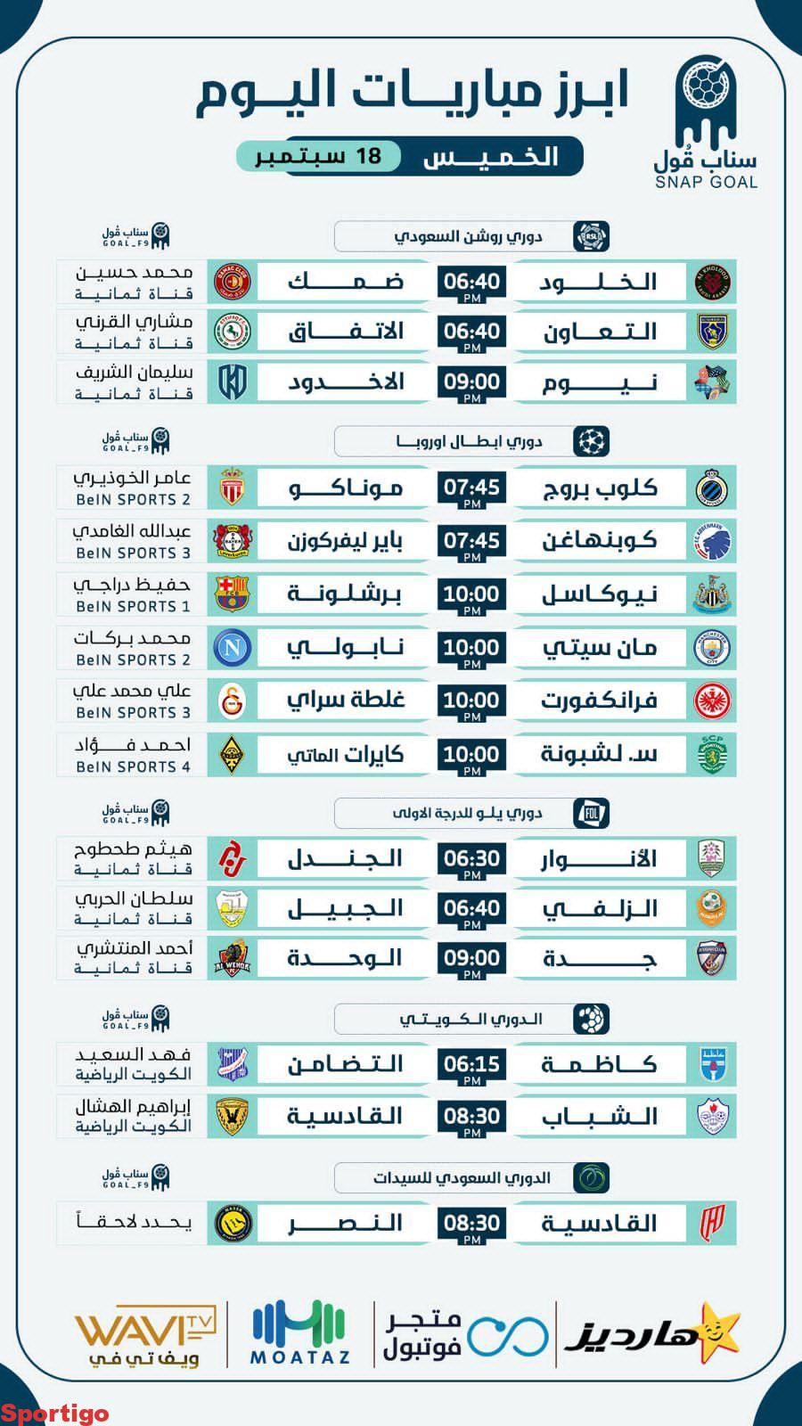 ⚽️ 🗓 | 18 سبتمبر #مباريات_الخميس #مباريات_اليوم..