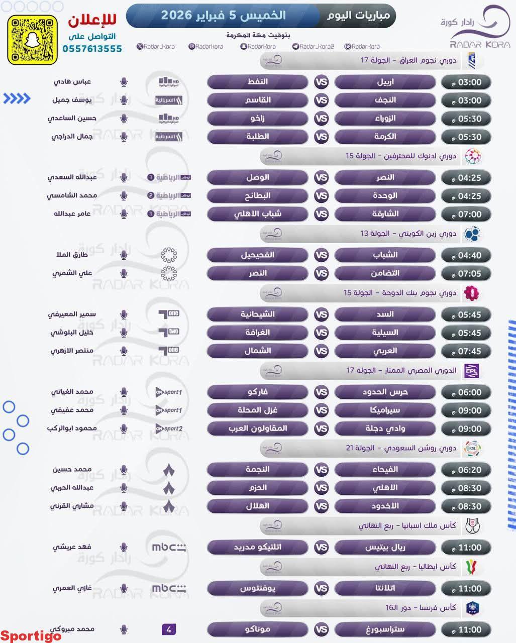 ⚽️ 🗓 | 5 فبراير #مباريات_الخميس #يوفنتوس_اتلاتتا #اتلتيكو_مدريد_ريال_بيتس #مباريات_اليوم..