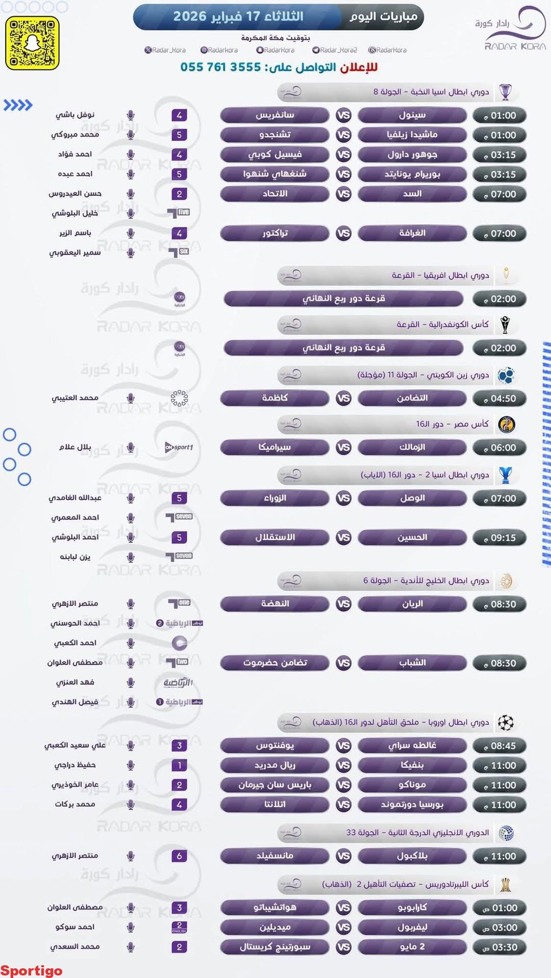 | #مباريات_اليوم… semmou منذ 5 ساعات ⚽️ 🗓 | 17 فبراير #مباريات_الثلاثاء #مباريات_اليوم.. مقالات ذات صلة يوم المباراة… ريال مدريد في صدارة اللغيا… يوم المباراة يوم ريال مدريد… موندو ديبورتيفو:…