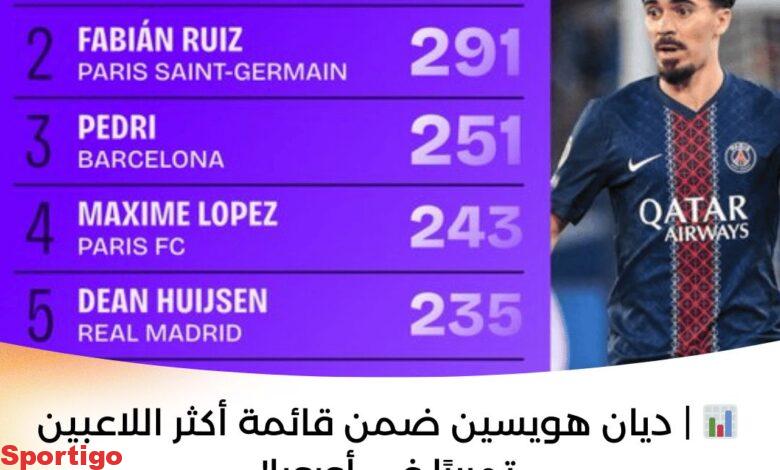 | ديان هويسين ضمن قائمة أكثر اللاعبين تمريرًا في أوروبا!…