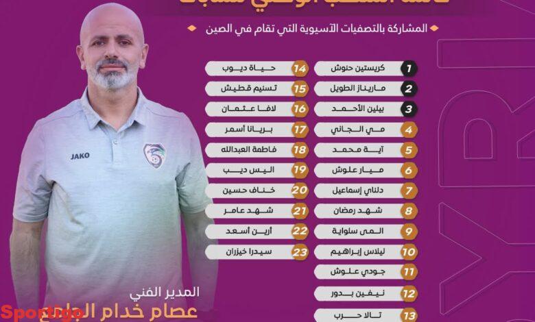 قائمة المنتخب الوطني للشابات التي ستخوض التصفيات الآسيوية المقامة في الصين بالفترة من 6 ولغاية 10 من الشهر الجاري….